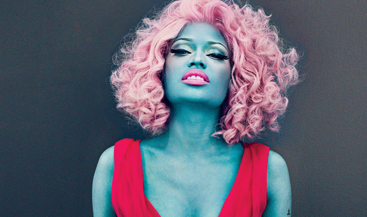 Nicki Minaj Goes Blue, Kanye West Goes Shirtless in 'Vogue'