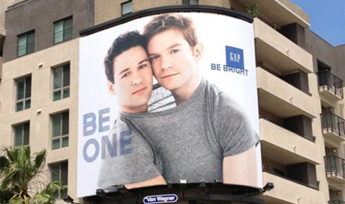 Wowza. It's starting to look like every company is advertising directly to the gay community these days: J.Crew hit the trend early with an adorable boy duo last year, last week we caught wind of a boy-on-boy Ray-Ban ad, and just yesterday mentioned a JC Penney catalog that spotlights lesbian partners and their family--not to mention Mr. Kenneth Cole who has always shown love to the gays with his campaigns. Today, Towleroad pointed out that Gap has jumped on the bandwagon with a billboard starring two dashing dudes (caught via Twitter by Chris Votaw, or @votaw). Earlier this week, the New York Times profiled Gap, Inc., noting that after a handful of tumultous, lethargic years, the brand is looking to recapture the sense of understated-cool that they originally heralded in the 90s and which went on to fully permeated the zeitgeist for some time. While we realize that even the most earnest seeming, heartstring-tugging advertisements have some sort of profit-driven intent behind them, it's a testament to a company as ubiquitous as Gap to make such a public endorsement of support to the LGBTQ community.