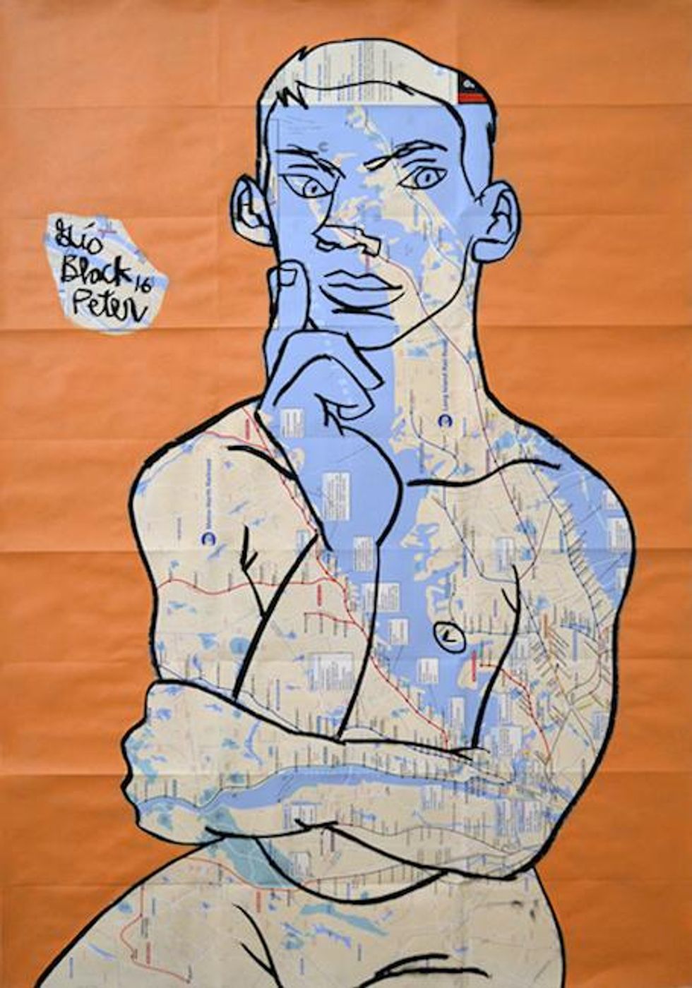 Known for his erotic male nudes and collages using subway maps, artist Gio Black Peter is showing new work in If We Do Not Destroy Ourselves, an exhibition on view through May 26 at Casa de Costa, in New York.
