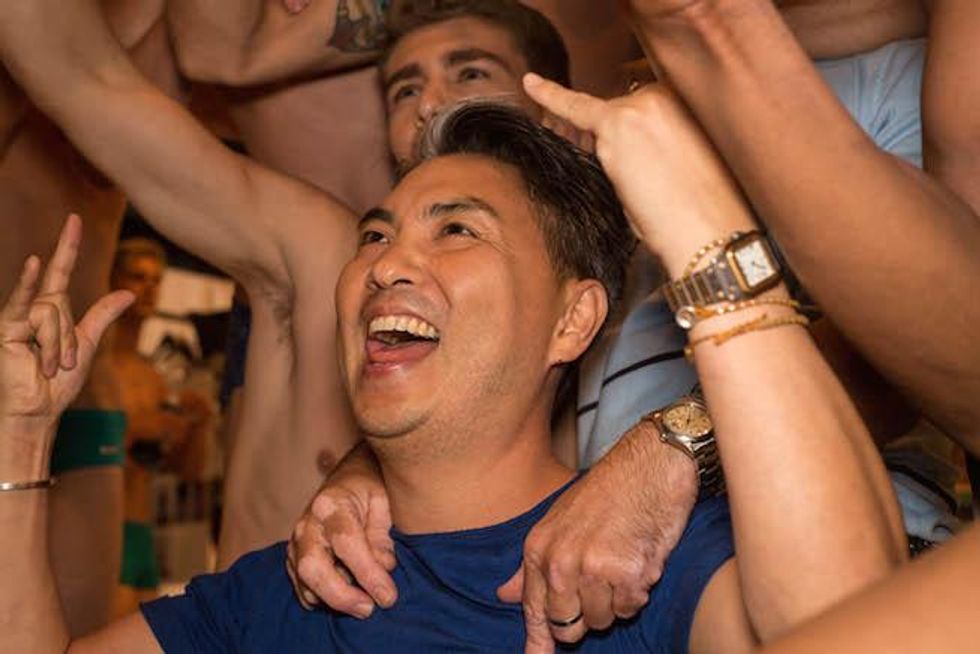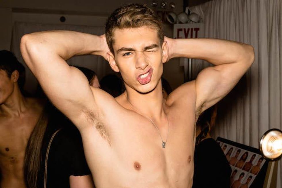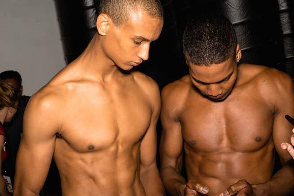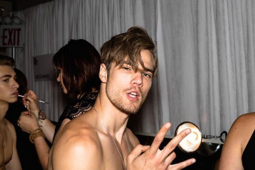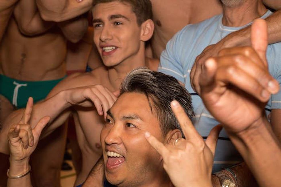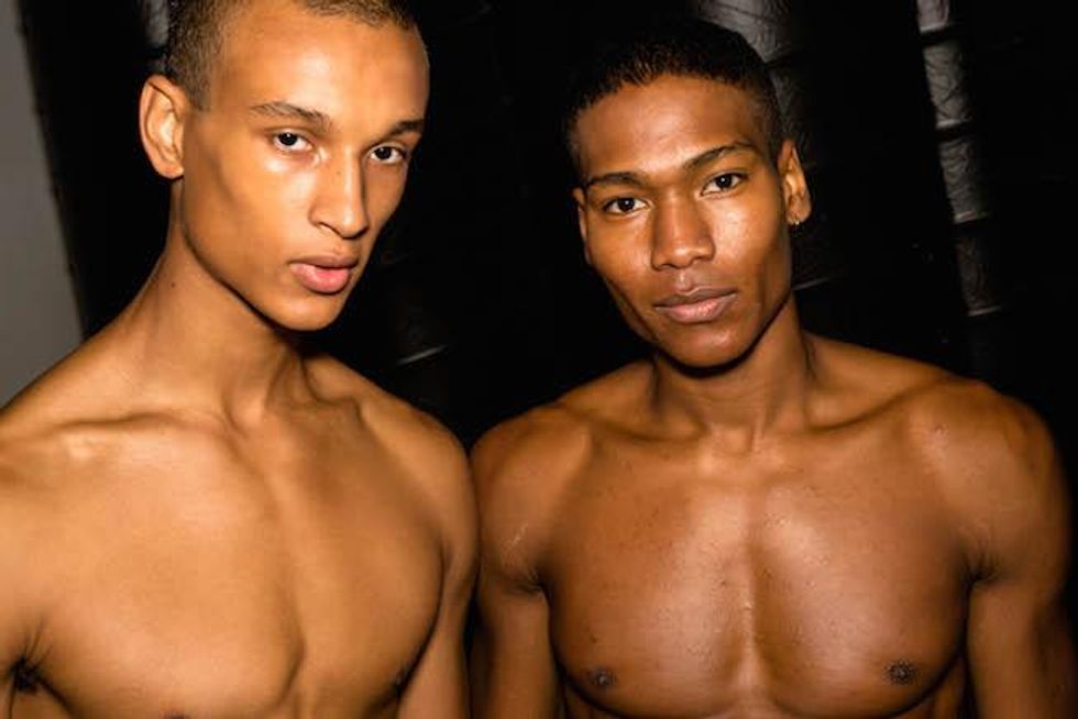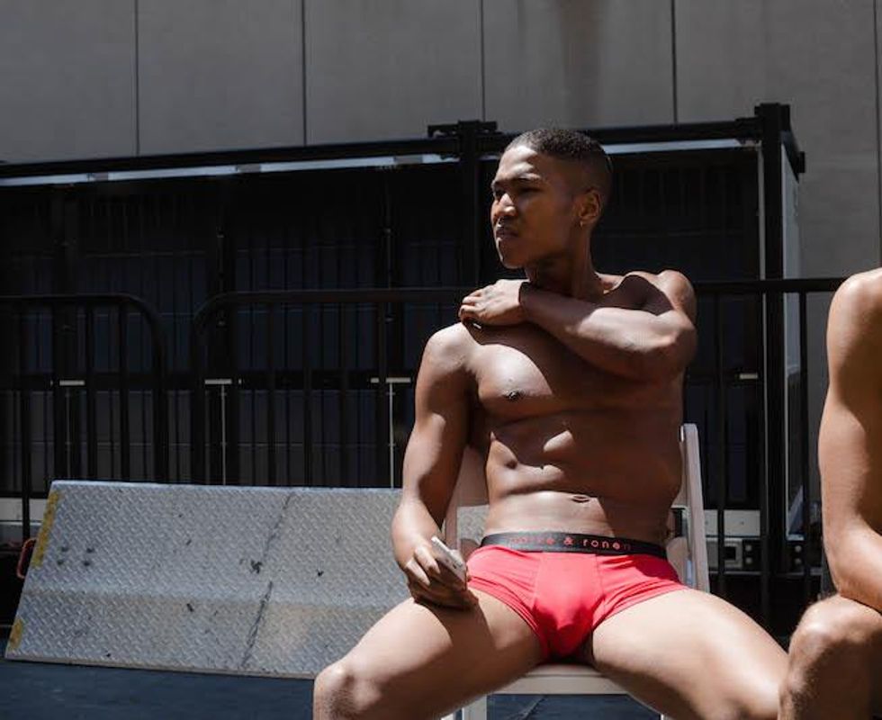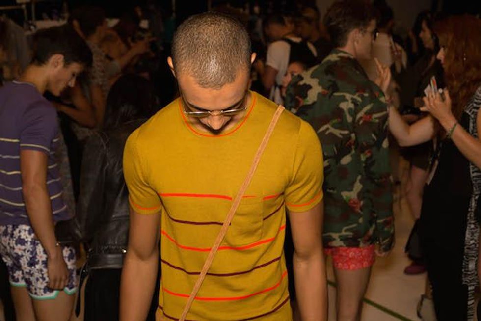 It was a celebration of the Seventies at Parke & Ronen. Inspired by Pan American Eastern airlines, designers Parke Lutter and Ronen Jehezkel took their cue from patterns found in flight lounges for their swimsuit and casual sportswear collection. We went behind the scenes to show you the boys in their undies (as well as some of the casual collection).