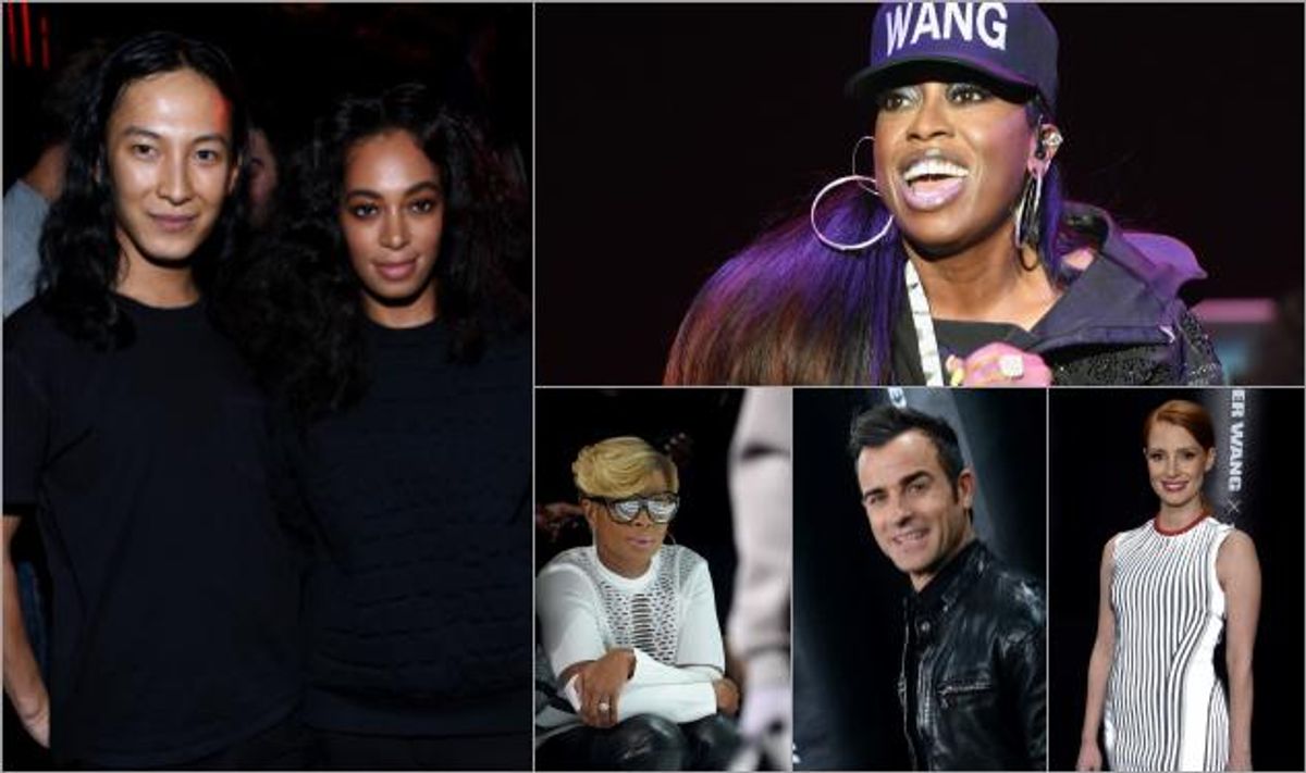 Pictured, clockwise from left: Alexander Wang with Solange Knowles, Missy Elliott, Jessica Chastain, Justin Theroux, Mary J Blige.