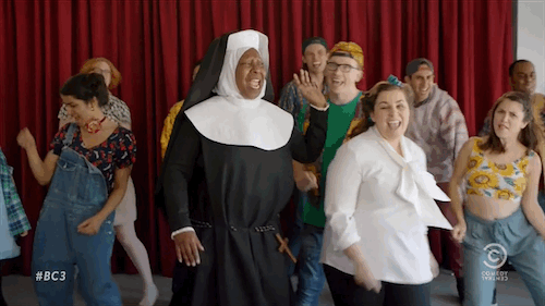 So it was no surprise when--FOR NO REASON, mind you--a thoroughly '90s and thoroughly hilarious tribute to Sister Act 2 snuck its way into last night's episode. It was no surprise, but god damn, was it amazing. And Whoopi Goldberg got back in the habit!