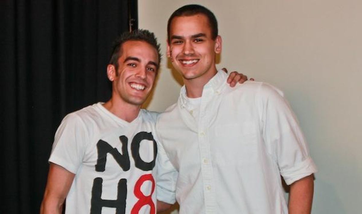Glenn Garner (right) the day a NOH8 representative visited the school campus