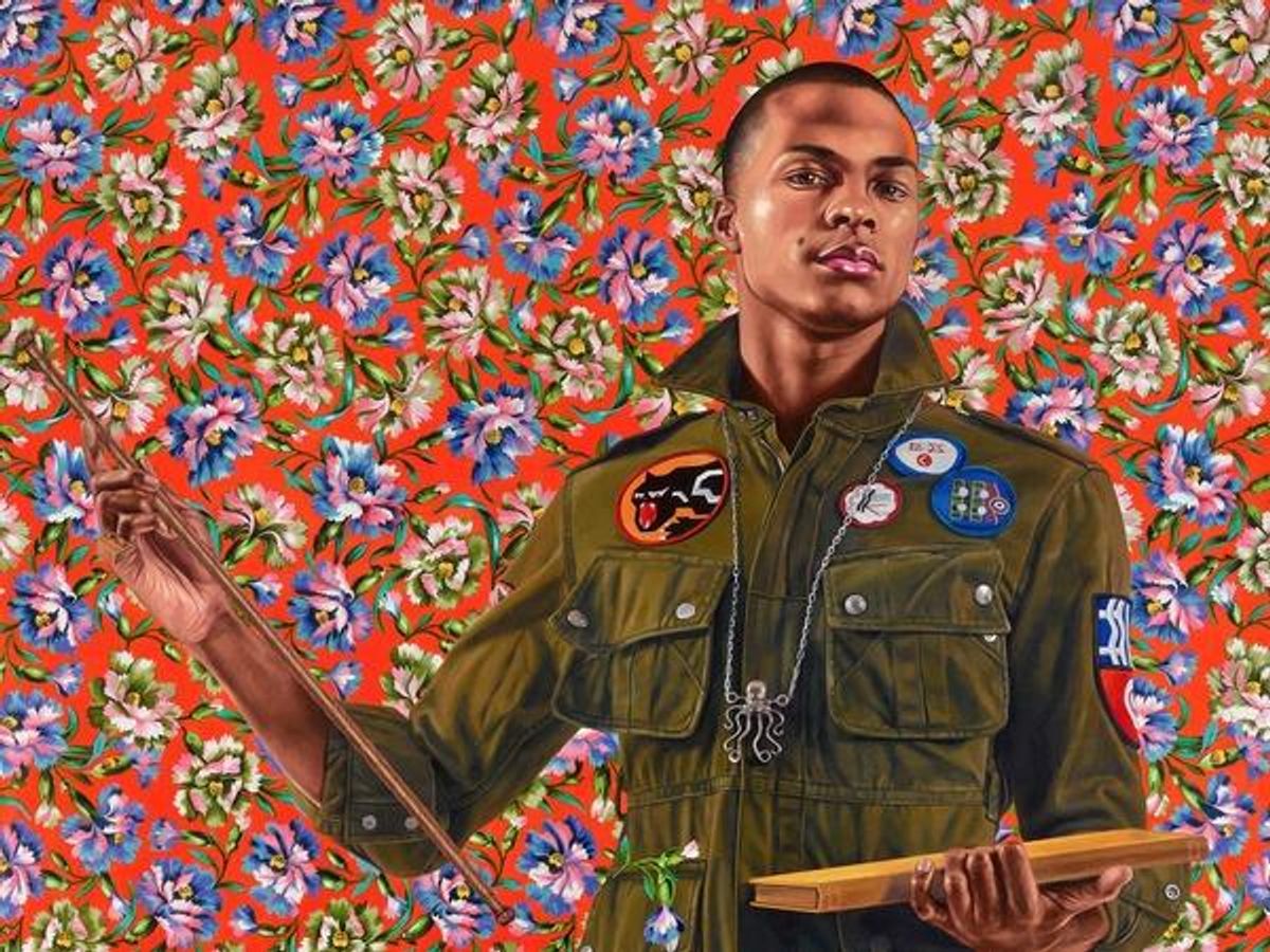 Known for melding traditional European painting practices with observed street life -- with subjects found in Harlem, China, Israel, Africa, and beyond -- Kehinde Wiley's exquisite portraits earned him the U.S. State Department Medal of Arts earlier this year. The medal is awarded for substantive commitment to the US State Department's cultural diplomacy outreach through the visual arts. His defiant, sumptuous, sexual portraits are at the center of the retrospective at the Brooklyn Museum's Kehinde Wiley: A New Republic.