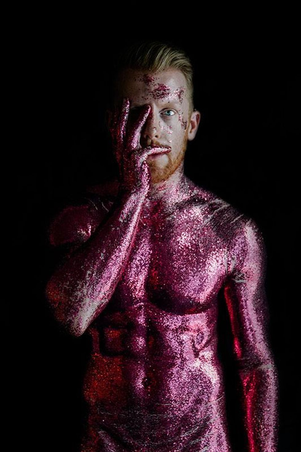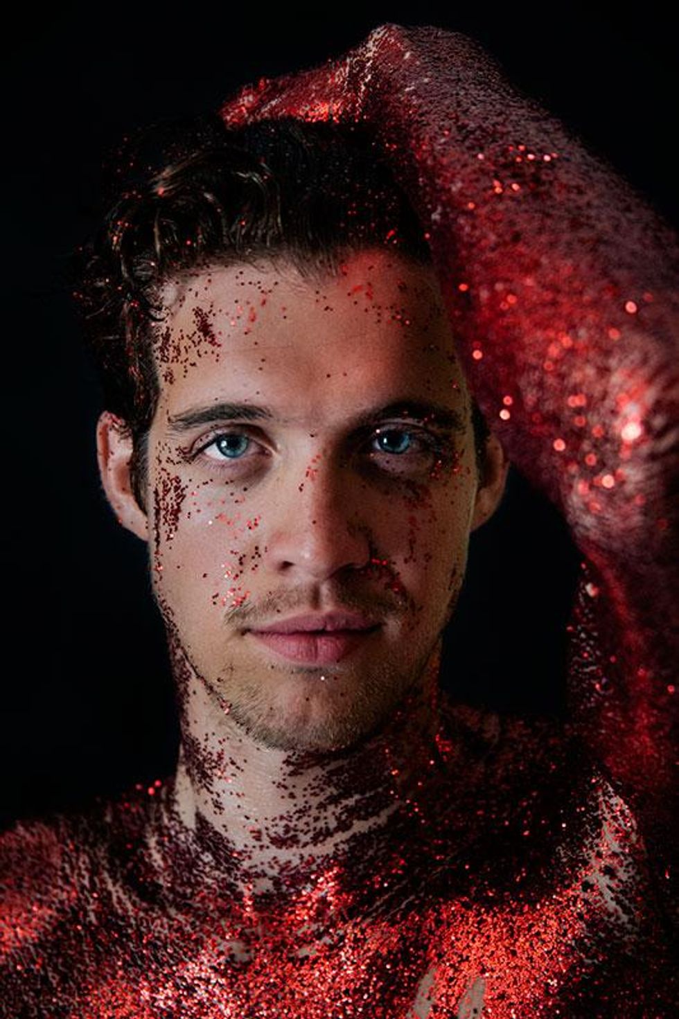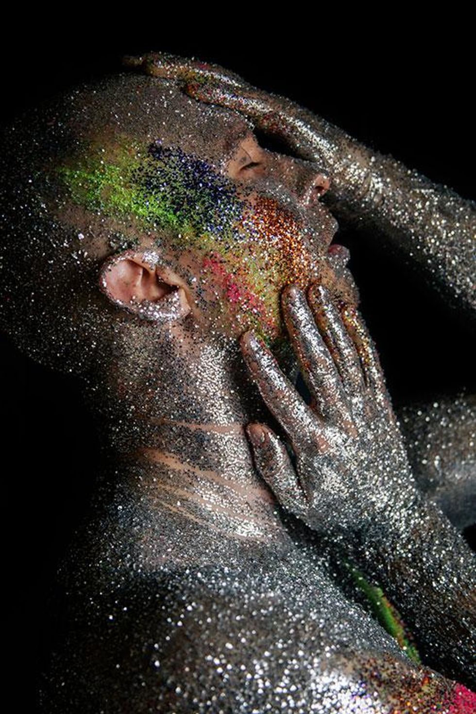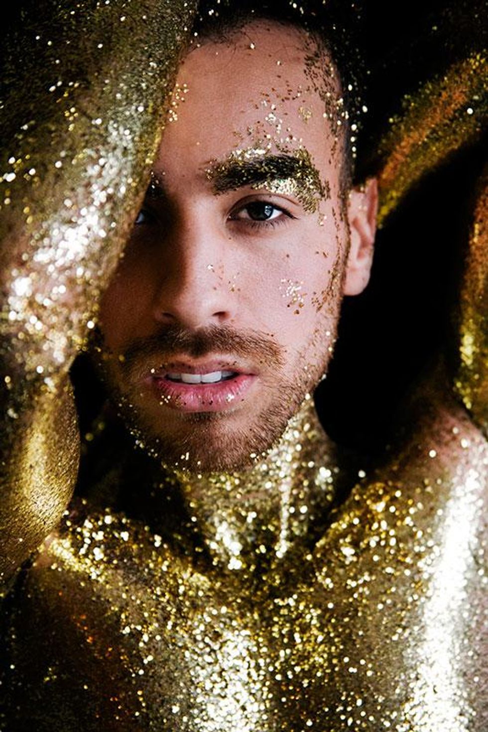 "I wanted share the rich history of what these colors truly stand for with the world and our community," Paez explains. "Through this series of glitter portraits, I wanted to highlight what the rainbow Pride flag means. Through many conversations with my own community, I've realized that a lot of my gay friends don't even know why the flag is a rainbow or what each color represents. I wanted to use glitter for these images since I see it as representative of the 'perfect persona' we so often put out on social media -- all shiny and pretty. All the while, the truth about who we really are is tucked safely behind the entire perfect, public image that we've curated."