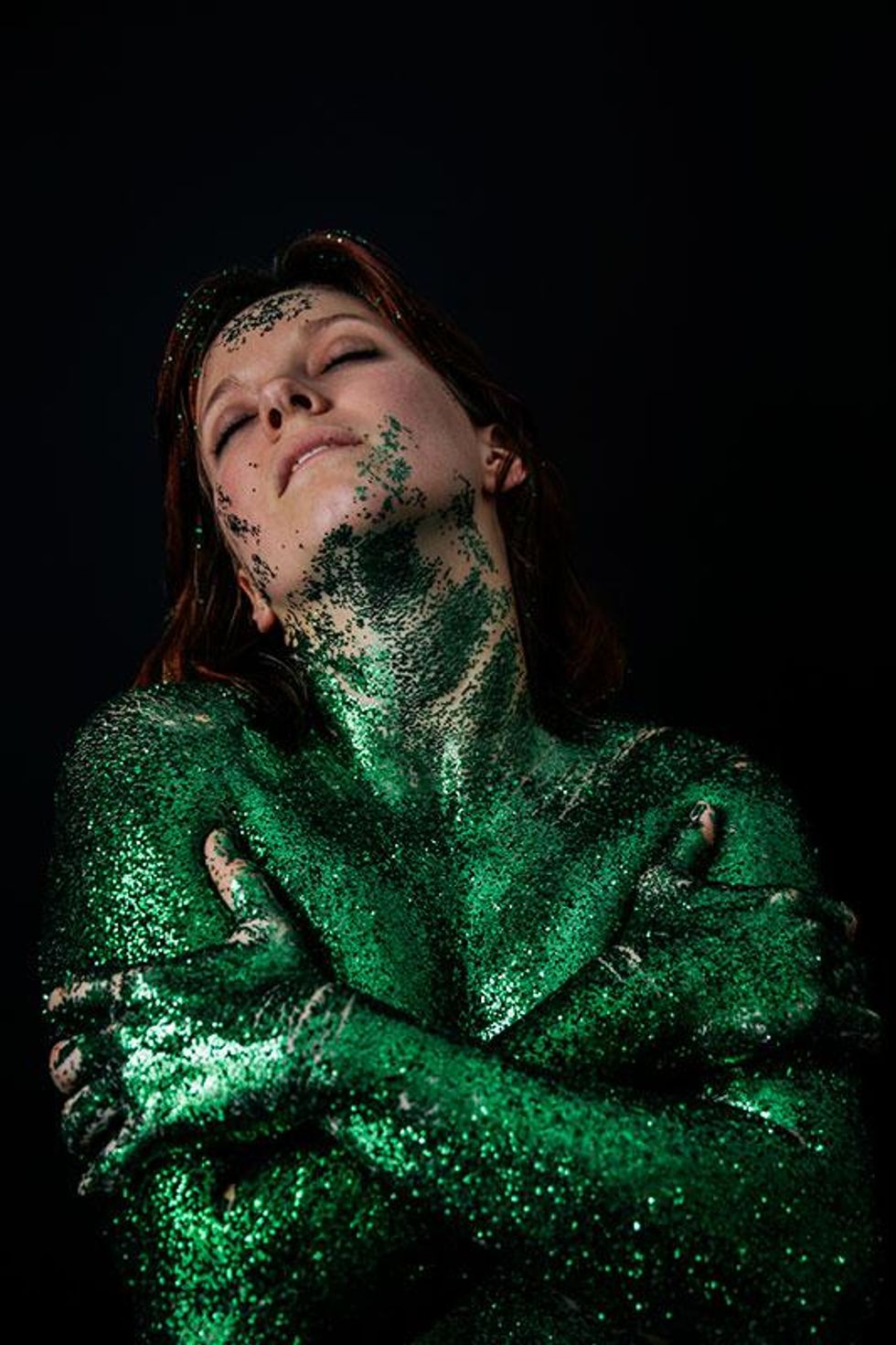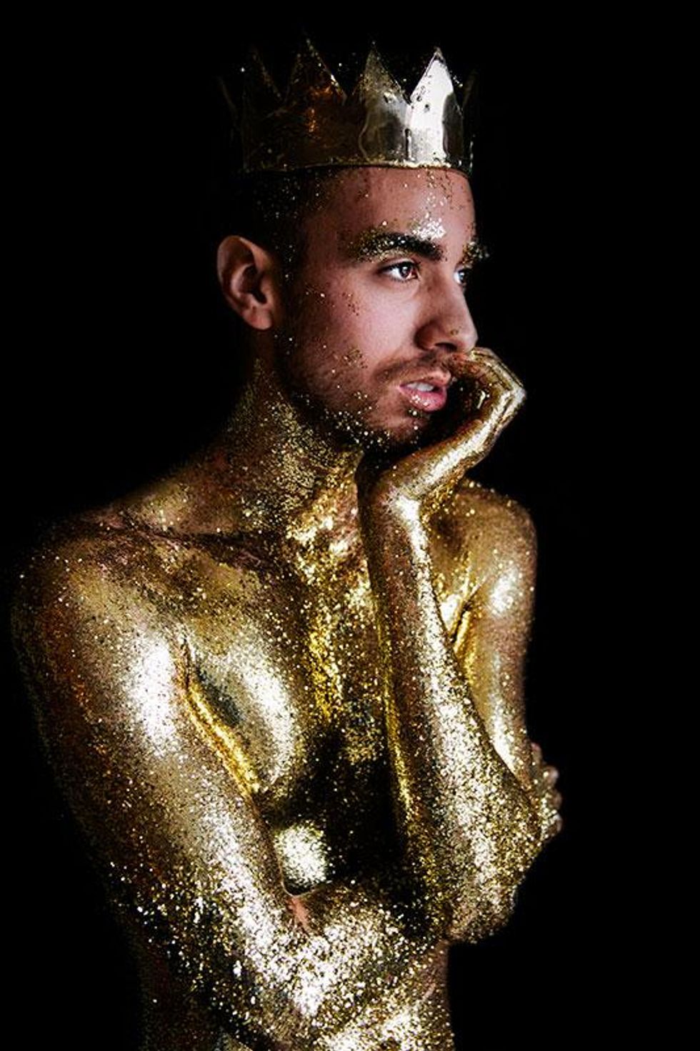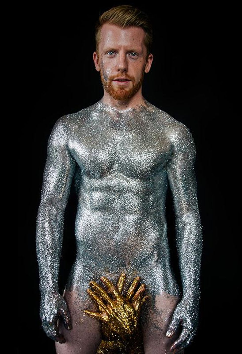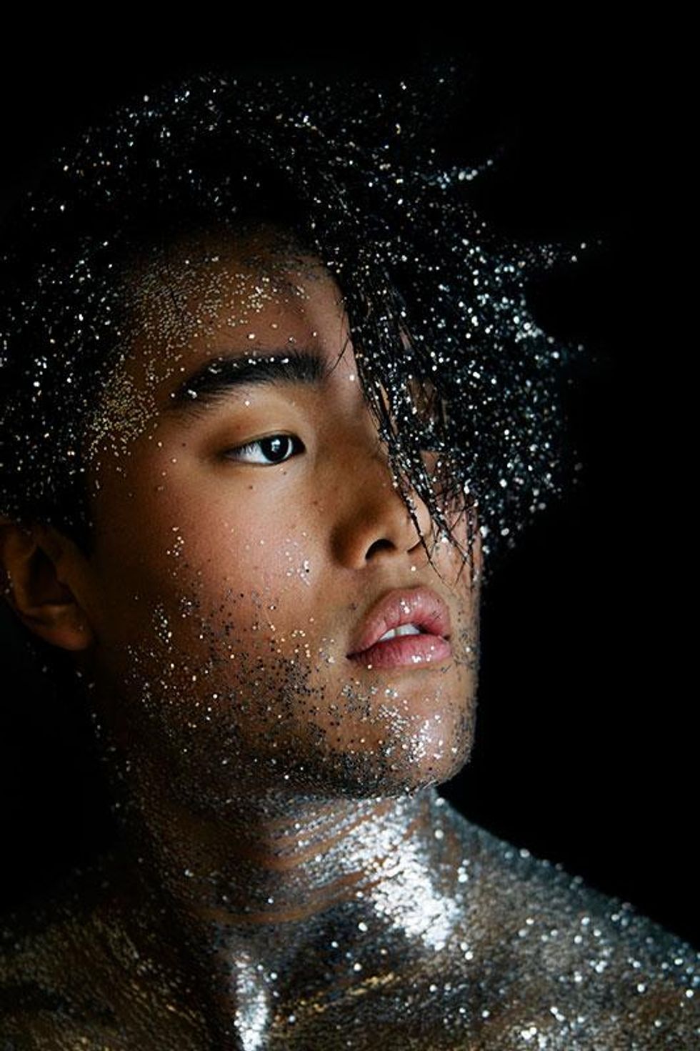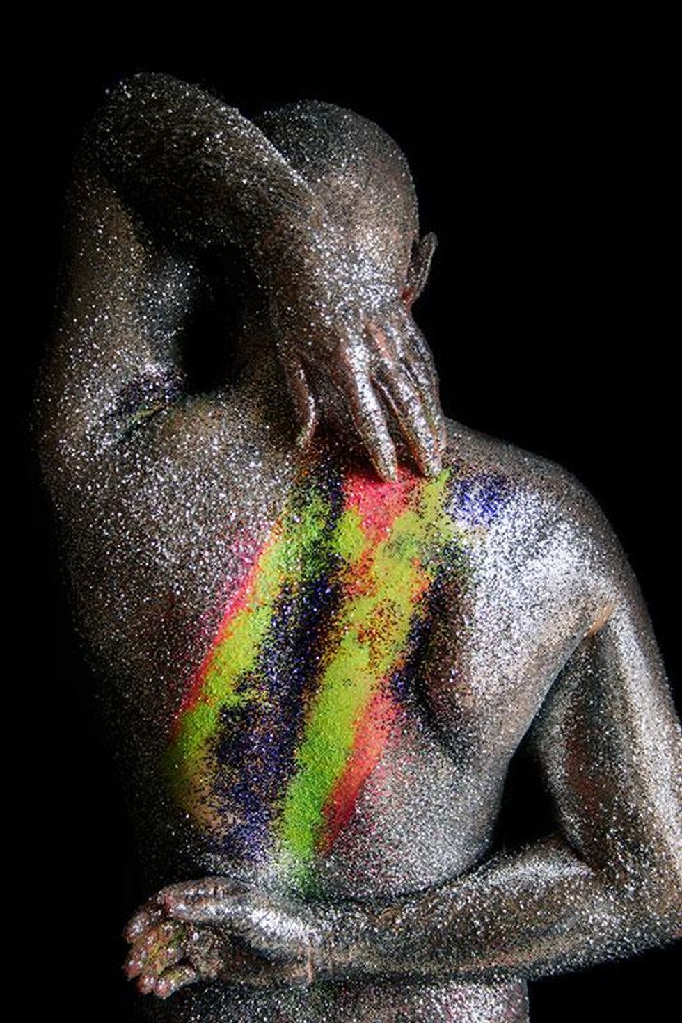 "I wanted share the rich history of what these colors truly stand for with the world and our community," Paez explains. "Through this series of glitter portraits, I wanted to highlight what the rainbow Pride flag means. Through many conversations with my own community, I've realized that a lot of my gay friends don't even know why the flag is a rainbow or what each color represents. I wanted to use glitter for these images since I see it as representative of the 'perfect persona' we so often put out on social media -- all shiny and pretty. All the while, the truth about who we really are is tucked safely behind the entire perfect, public image that we've curated."