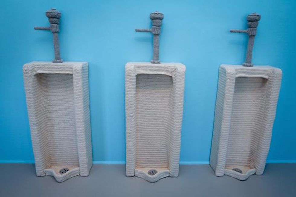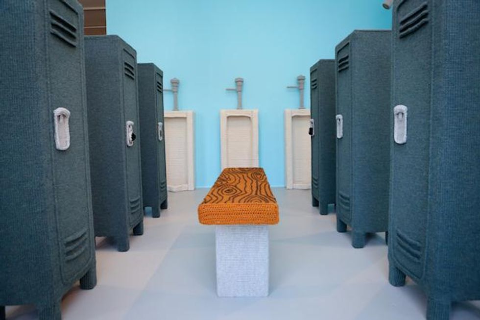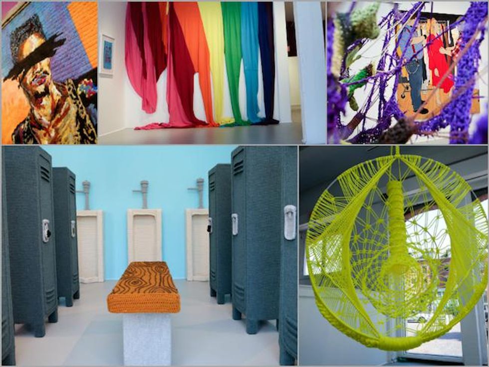 Curator John Chaich found a mix of artworks ranging from 1955 to 2016. "(The show) is loaded with gender connotations, feminist herstories, and tactile experiences," he writes in his exhibition notes. "The featured works utilize handicraft--including crochet, embroidery, knitting, macrame, quilting and sewing--as a platform for examining tastes, roles and relationships socialized within and around gay and lesbian culture, as well as the bodies, cultures, and spaces that shape us.