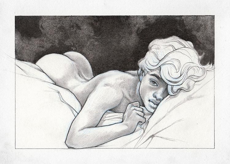 Art first came to Bedolla in a way it does for many teens: through doodling. But after enrolling at Grand Rapids Community College and taking a few drawing classes, he declared fine art as a major and took his practice more seriously, later attending Kendall College of Art and Design. "After I graduated, I actually started exploring what I wanted my style to be and what I wanted to say with my work," Bedolla says. "Initially, I always thought nudes--like, classical nudes--were fascinating and sensual. So I started there."