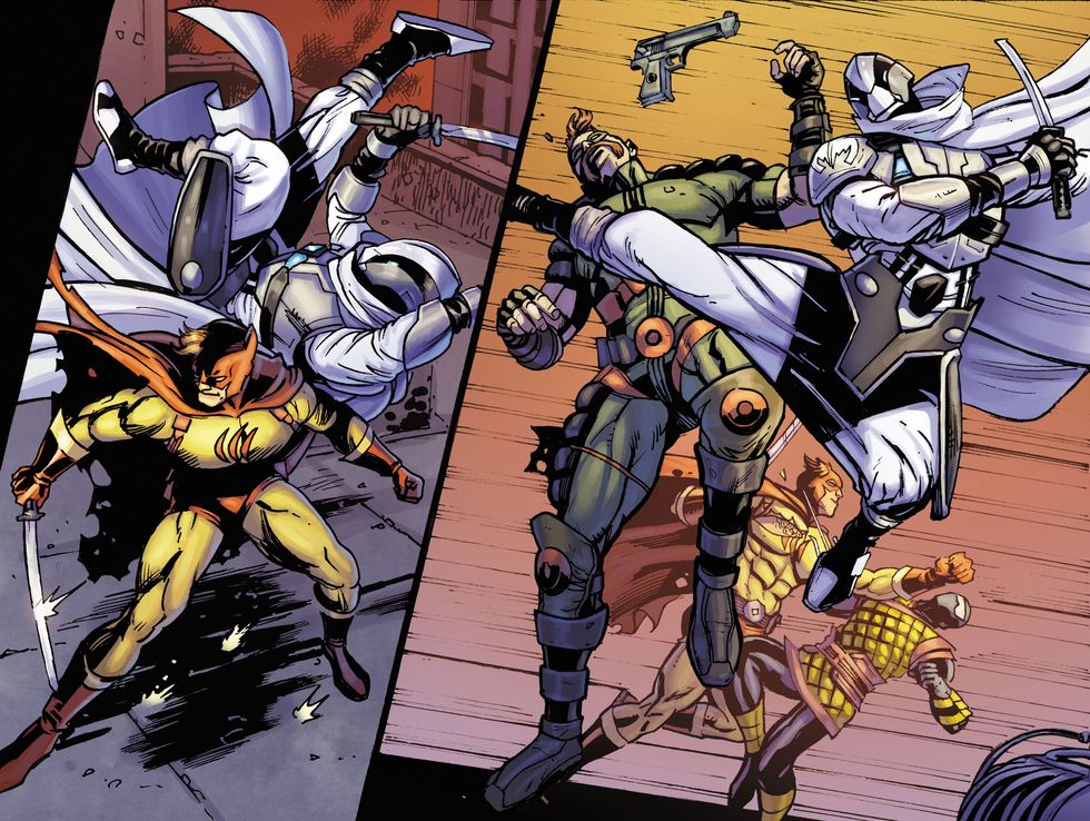 Ghost-Maker and Catman face off against Cannon and Saber.