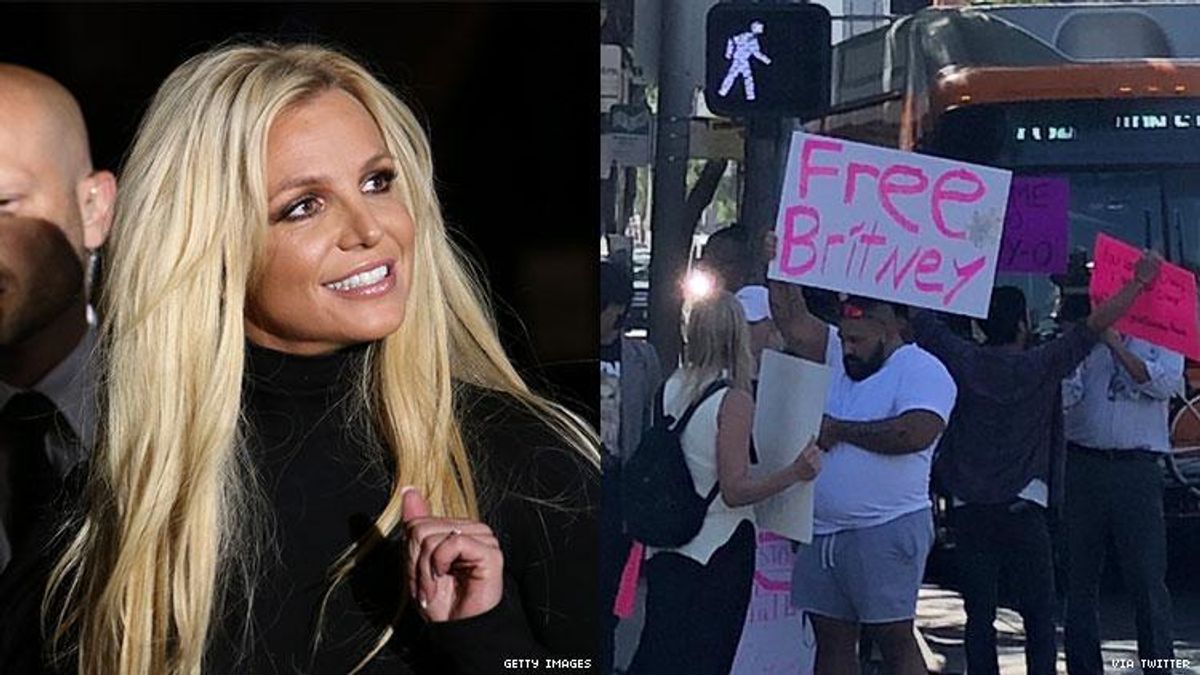 The protest comes after #FreeBritney began trending on social media in response to an episode of the podcast Britney's Gram, which asserted based on a voicemail from a paralegal source who claimed to have knowledge of the situation, that the 37-year-old singer was being held in a treatment facility against her will.