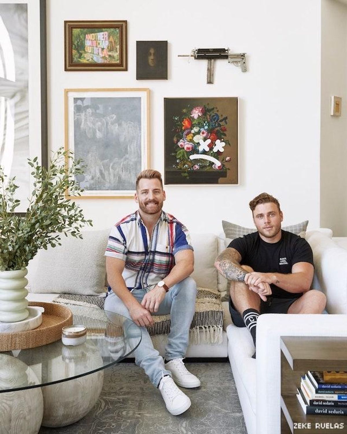 Kenworthy, who has lived in the apartment since 2018, when he moved to California in order to pursue a career in Hollywood, has filled the space with works from queer artists. There's an original tom of Finland Sketch, pieces by Andy Warhol -- a Polaroid of Dolly Parton among them -- as well as an "oil painting of two men canoodling by Mark Beard." They decorate the walls of a home that took a year to renovate.