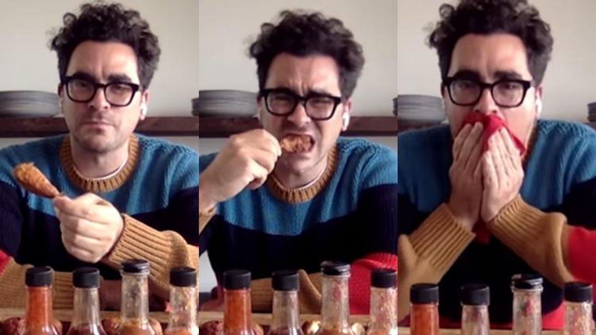 Schitt's Creek co-creator Dan Levy has been busy in quarantine. He's participated in multiple fundraisers, signal boosted others, and gotten pretty chummy with fans online. He's also been doing a series of virtual interviews and appearances, mostly tied to the final season of Schitt's Creek which will be released on Netflix in October. His latest appearance: on First We Feast's Hot Ones.