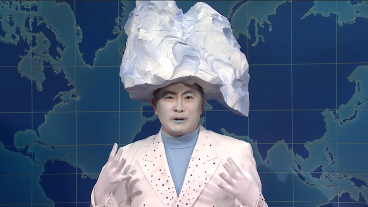 One of his breakout roles on the show was as the sassy iceberg that sank the Titanic on Weekend Update. "First of all, you came to where I live and you hit me!" Yang said of the ship in the sketch. "It was midnight, I was chilling. Then I hear this Irish cacophony behind me." But he wasn't done there.