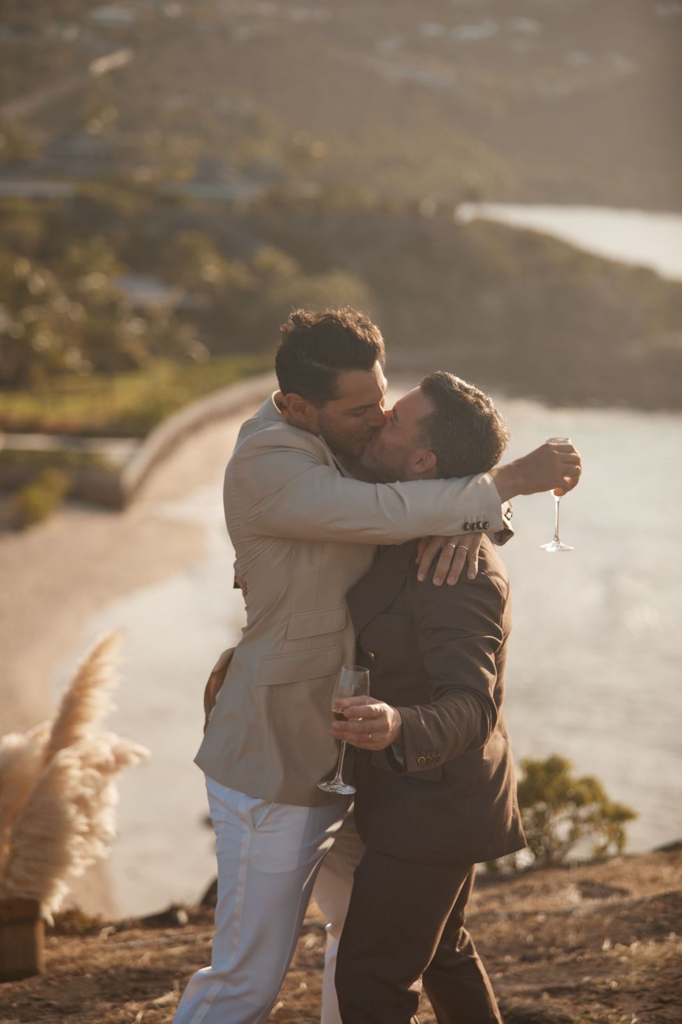 "A year prior we visited the Rosewood Le Guanahani and the moment we saw the rock in the middle of the ocean, we both looked at each other and agreed that we would do our wedding there," Grossman said. "It was being back on the property that made us realize how perfect it was to seize the moment. It could not have been more perfect. Ultimately, we just wanted to seal the deal and call each other husbands. Despite the short time to plan, we ended up having the most incredible night."