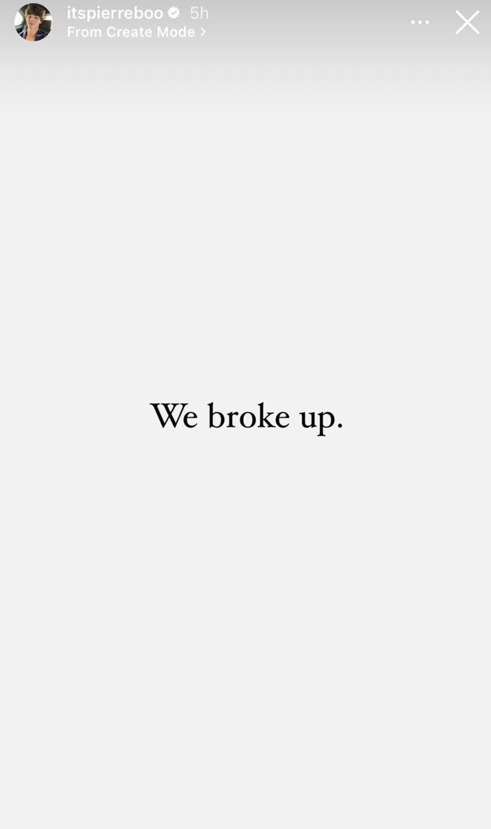 "It was almost like I felt trapped within an ideology of what we've become," he continued. "I can only speak for myself. I lost myself in this relationship, incredibly. I sacrificed a lot for this relationship. I dedicated myself to this relationship and the brand that we were building. I think that at this stage in my life, I had to choose me and pick me first. And I think [Pierre] had to do the same, and that's the direction we're heading in."