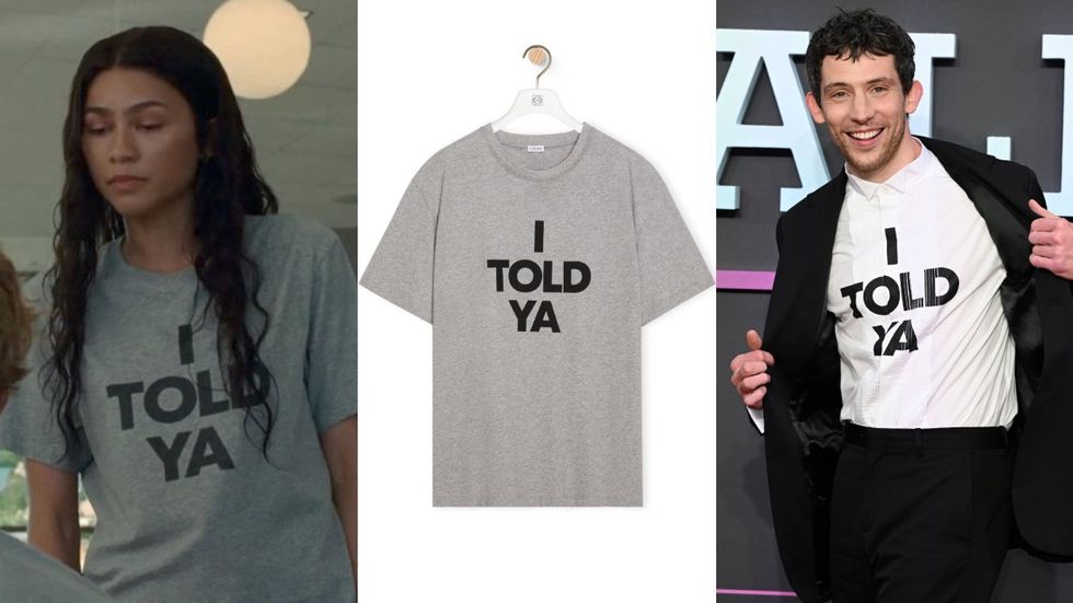 But besides the threeway kisses, sweat, and phallic-shaped food (anyone else been craving churros lately?), Challengers is also making a buzz in the fashion world, especially since Loewe and JW Anderson's creative director Jonathan Anderson served as the film's costume designer. While fans went out in droves wearing their best tennis-themed looks to theaters to see the movie, one look in particular has been catching fans' eyes online: the "I Told Ya" t-shirt.