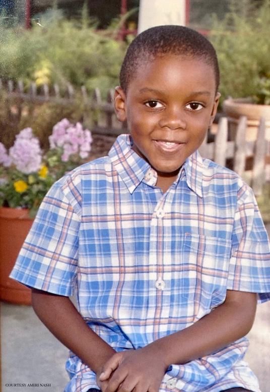 Above: activist Amiri Nash giving a speech present day. Below: Nash as a young child.