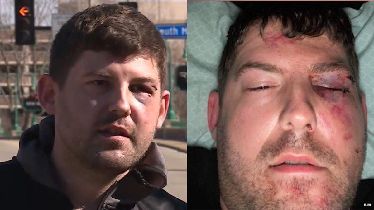 He confronted the four men about the alleged gesture and slur, going so far as to push one of them. The altercation the devolved into a brawl, leaving him with a fractured nose and eye socket and knocking his boyfriend unconscious. The boyfriend may also lose teeth as a result of the altercation.