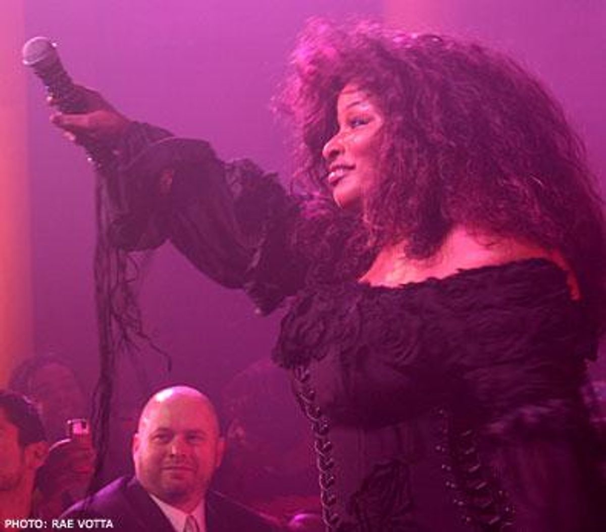 "I'm working too hard to celebrate," Khan says during all-day promotion for her album. In January she'll take up residence on Broadway, playing Sofia in The Color Purple. It's a far cry from her years spent battling record companies for creative control -- not to mention a very public struggle to get and stay sober. She credits her "unfickle" queer fans with helping keep her afloat through the turmoil. "Whenever times got rough," she says, "I could always depend on one of the children to come through with a gig."