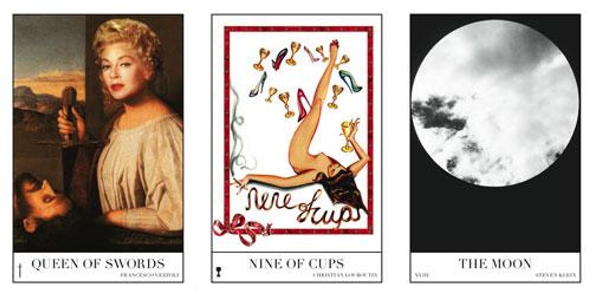 Last week Stacy Engman, Chief Curator of Contemporary Art at the National Arts Club, opened the doors on her latest show titled Contemporary Magic: A Tarot Deck Art Project and it was equal parts creepy, kitschy, and brilliant. Engman, who whore a Philip Treacy hat that resembled a card trick frozen in time atop her head, spoke to us briefly about where the idea came from: "I think the show deals with archetypes, which are often ignored in modern art," she explained. The roster of artists and fashion designers represented in the show is incredibly impressive, including major hitters like Karl Lagerfeld, Ryan McGinley, and Richard Prince.
