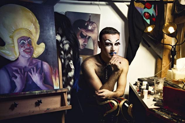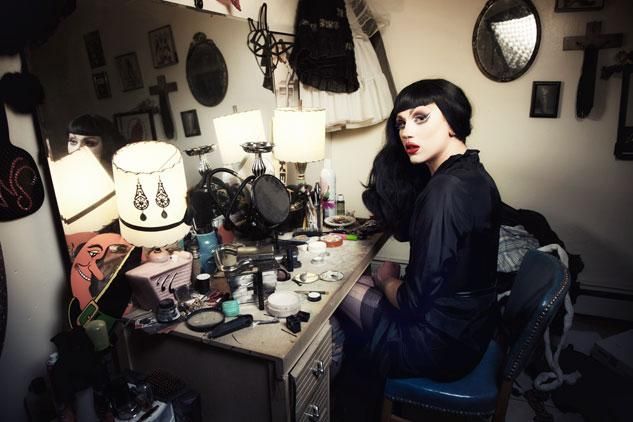 "For me, the scene feels like a lot of disenfranchised kids looking for an outlet, sick of elitist nightlife and wanting something more inclusive," Rodman says out of drag, eyebrowless and bleached blond, timid yet mannered with a honking laugh. We sit on his tattered sofa. The clutter all around the apartment has a Buffalo Bill quality. He'd never been to a drag show before first donning makeup in 2010. It is now paying the rent; he makes about $50 a night.