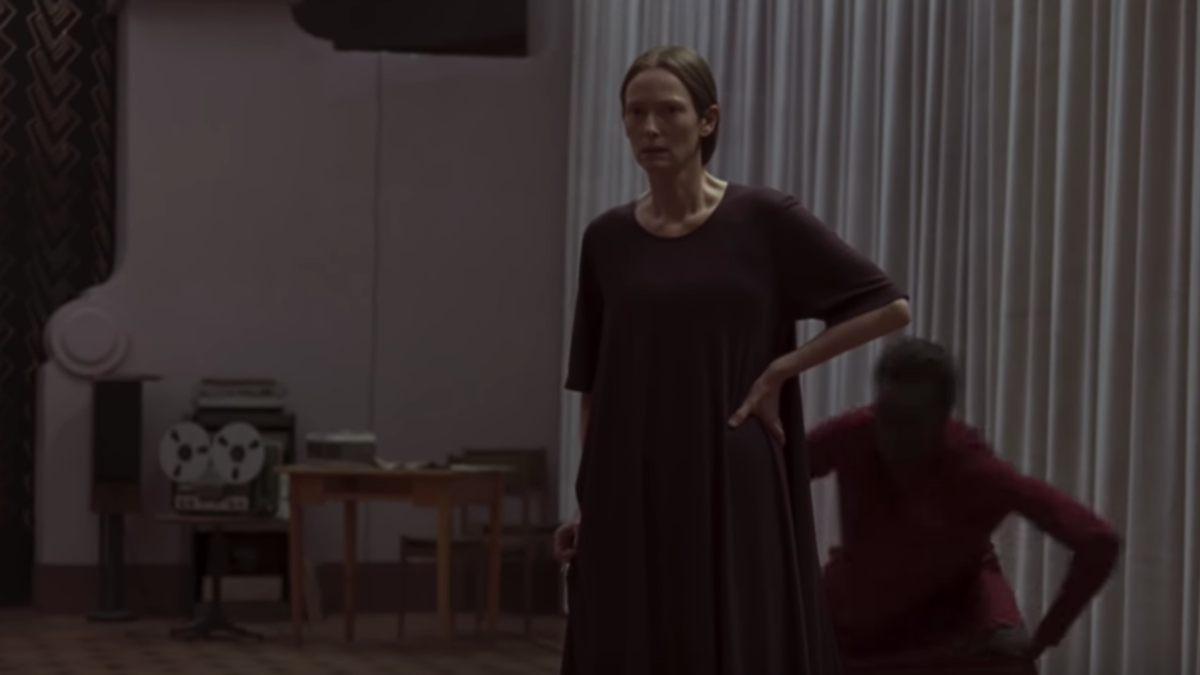 In the first clip from Suspiria, head instructor Tilda Swinton announces that the class will be working on a new piece with improvisation by Johnson. The girls start moving and then...thing get witchy.