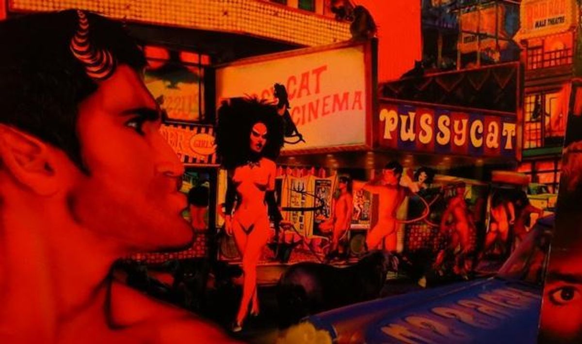 Take a stroll down mammary lane at New York City's Participant gallery, located in the Lower East Side, and check out artist Scott Ewalt's loving tribute to bare boobs and boys at, BACK IN THE NIGHT: Psychotronic Landscapes, Objects & Souvenirs (through April 14). It's almost as if Rudy Giuliani and his gang of porn police never swept the seedy neighborhood out, making way for Disney, Hello Kitty, and the goddamned Olive Garden.