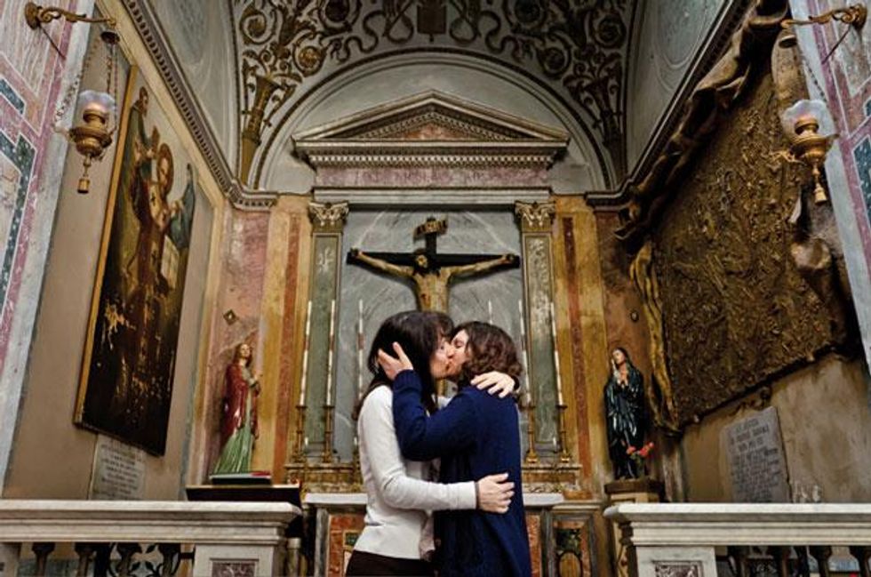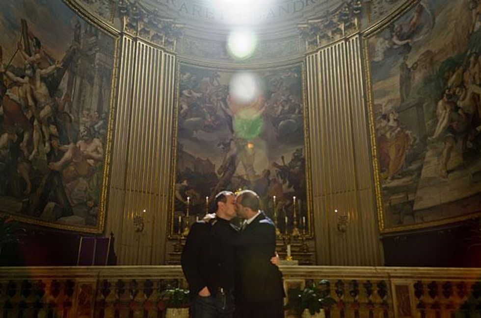 In September 2013, Orquin was set to open an exhibit, called "Trialogo," showing photographs of same-sex couples kissing in beautiful baroque Italian churches. But it was halted after the gallery received a letter directly from the Vatican threatening legal action and saying that "the church is against the exhibition" because it shows "expressions of affection that do not belong in a place of worship." (See the complete letter on the following pages.)