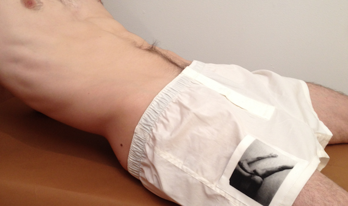 On Tuesday June 24, YUASA clothing line and the hip downtown shop International Playground, will be releasing a 100-piece limited-edition boxer short printed with Fredrickson's risque Polaroids. The photo series is called "Anonymity." Creative director and owner of International Playground, John Pizzolato explains: "The Polaroids are being sold as condom pockets. Its the suggestion of anonymous sex but still saying play smart and protect."