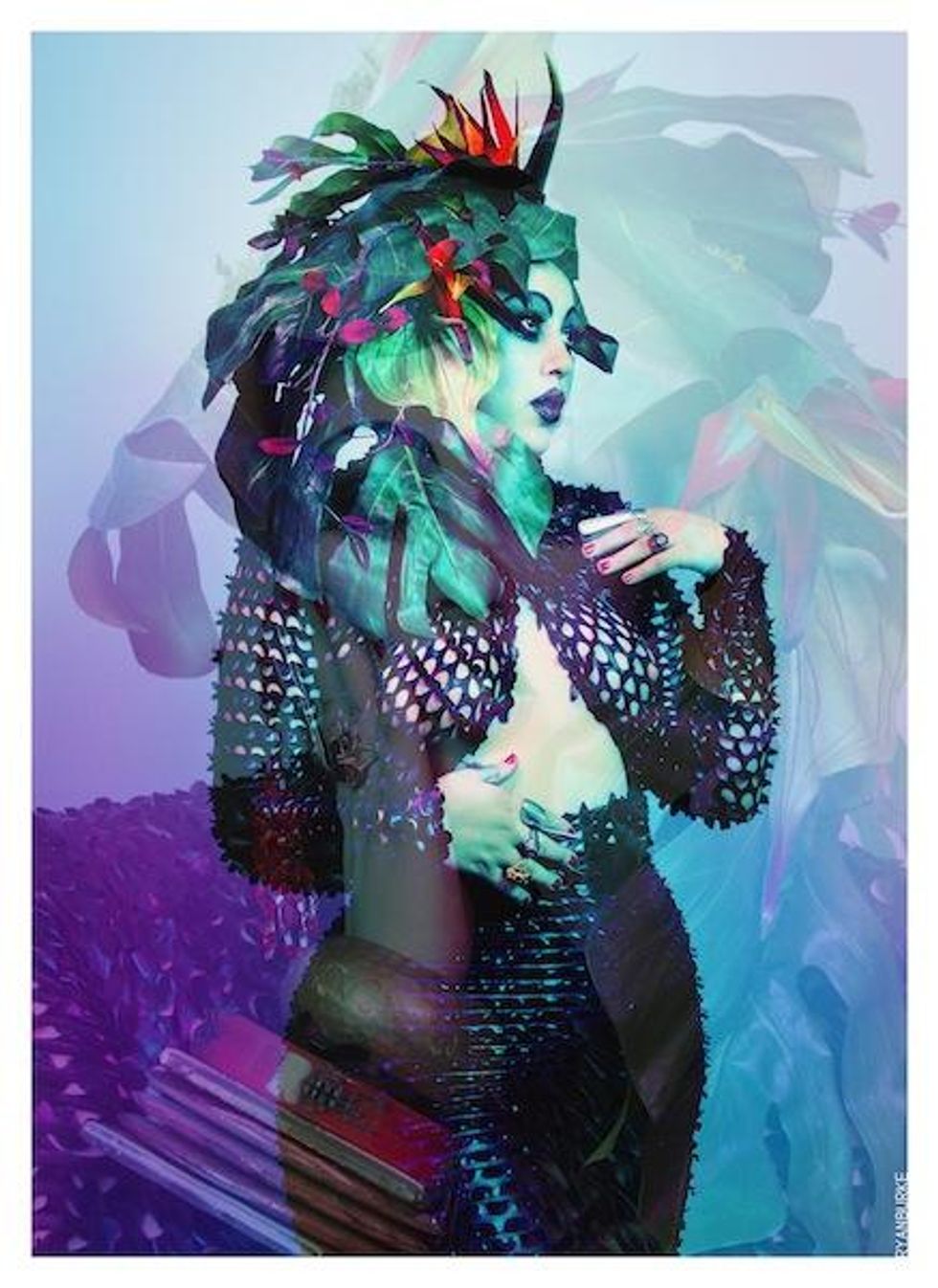 "I'm 'mother' to my fellow outcasts!" New York party promoter Domonique Echeverria told Michael Musto last month. One of those is her roommate, photographer Ryan Burke, who uses Echeverria (among others as his muse). He shared a few more of his photos of her as well as several of his own makeup and costume creations that he photographed.