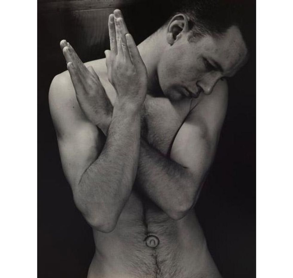 White mounted and bound the photographs of Murphy in a small artist's book. To page through it, with its alternating rhythms of stillness and movement, is to take a pilgrimage of sorts through White's various mental and emotional states, from anguish to ecstasy. Until now, "The Temptation of St. Anthony Is Mirrors" has never been exhibited or published in full; White kept it private, giving the only other copy to Murphy. In the late 1940s it was illegal to exhibt or publish full-frontal male nudes, and any man who did so would effectively have outed himself as a homosexual. The consequences for White would certainly have included losing his job as a teacher, his main source of income."