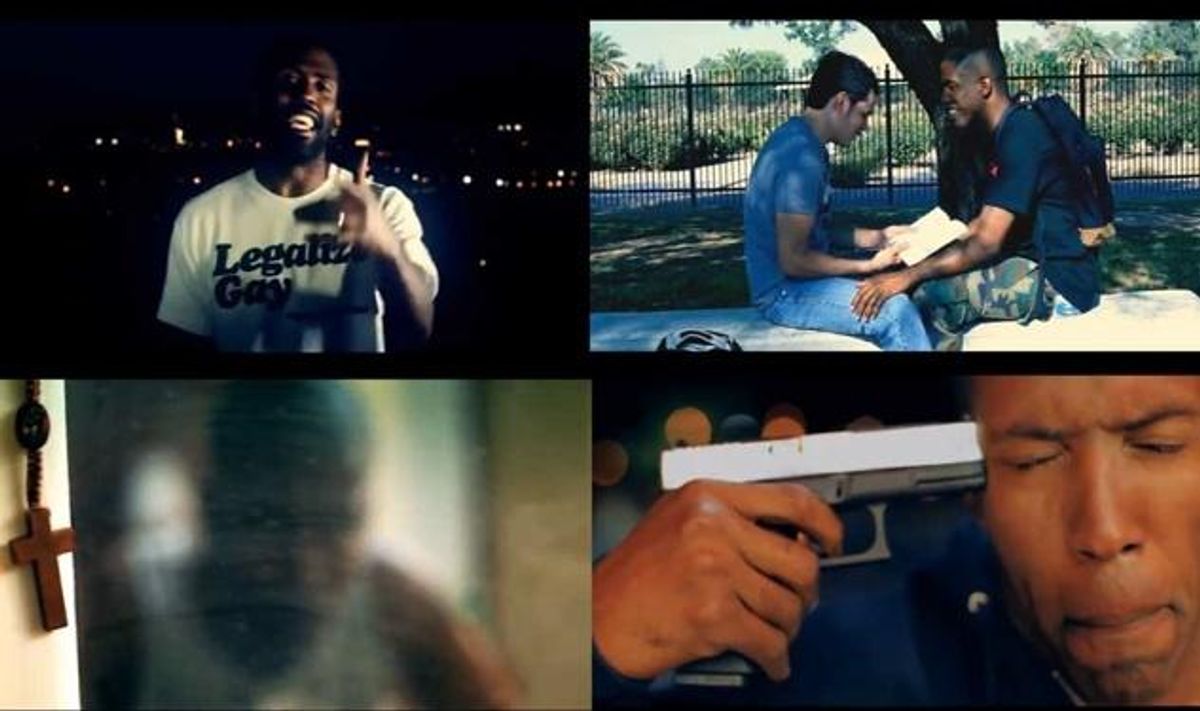 In the video for the single, from his 2011 album, Love & Rockets Vol. 1, Murs plays a closeted guy in a relationship with another man that ends in a chilling image of murder and suicide. "Boyfriend Roderick kept his secret closeted/ Scared to come out into this world of zero tolerance," Murs raps. "Wanted Roderick to follow him/ He see him in the halls/ But Rod would never acknowledge him."