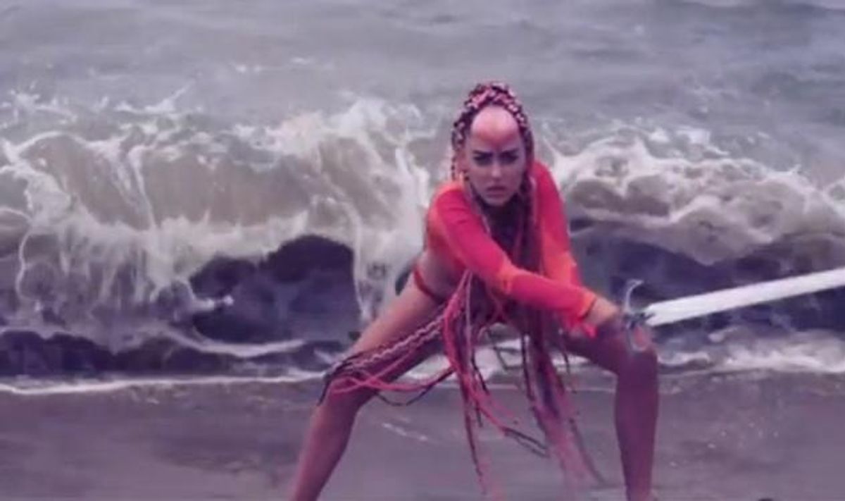 Indie darling Grimes (A.K.A. Claire Boucher) has just released the video for her song "Genesis" off her hit album Visions and it is absolutely mental in the best possible way. The video, directed by the breathy Canadian herself, features a cast of misfits seemingly plucked from a Mad Max rave held at Comic-Con. The video makes even less sense than any of her others but that's all right. Just enjoy the upbeat synths and medieval style combat in the desert and roll with it.