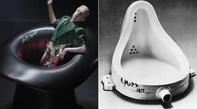 The video opens with an absurdly large hat signed 'Lady Gaga.' A nod, perhaps to the works of Marcel Duchamp who would sign something and then declare it art; however the hat could also be a nod to John Galliano, who she references later in the video.