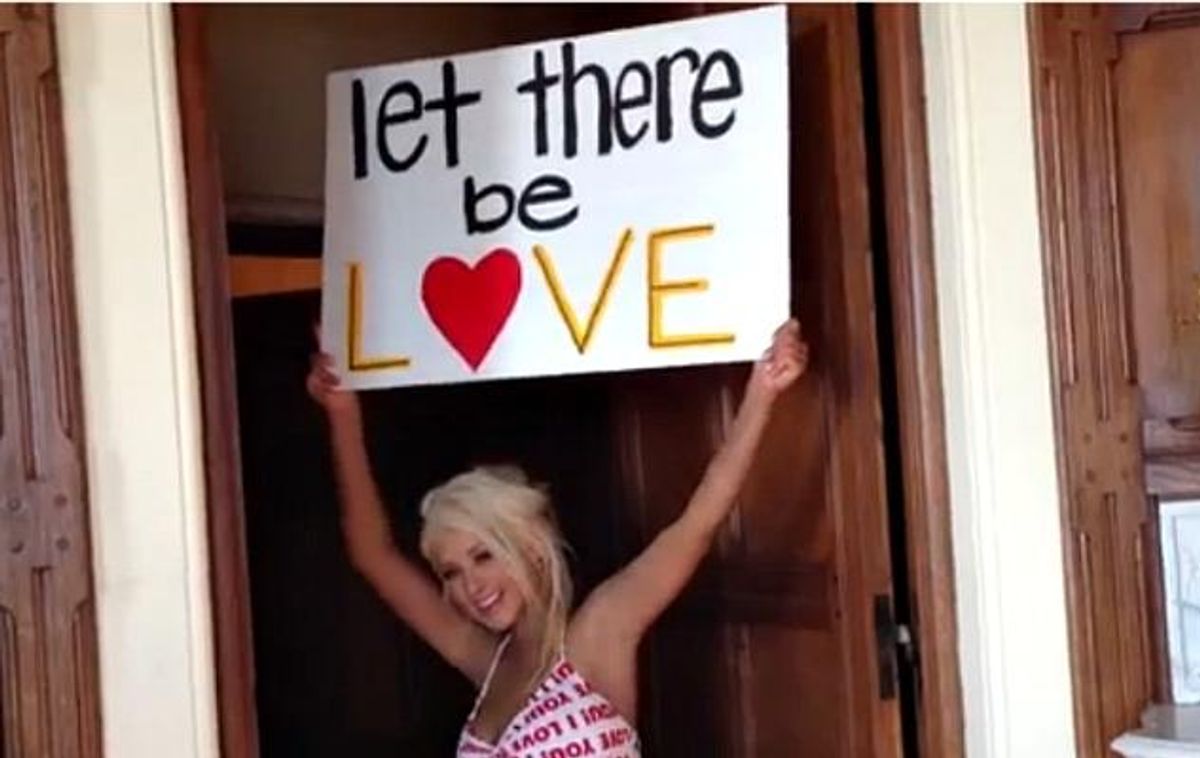 We haven't heard a lot of music from Christina Aguilera in a while--other than "Your Body"--but we're always up for checking out her latest endeavor. This time around, it's her new and clearly pro-gay song and video, "Let There Be Love." The album it's on, Lotus, was released last year, so we can't say that she's simply trying to be the lady Macklemore.