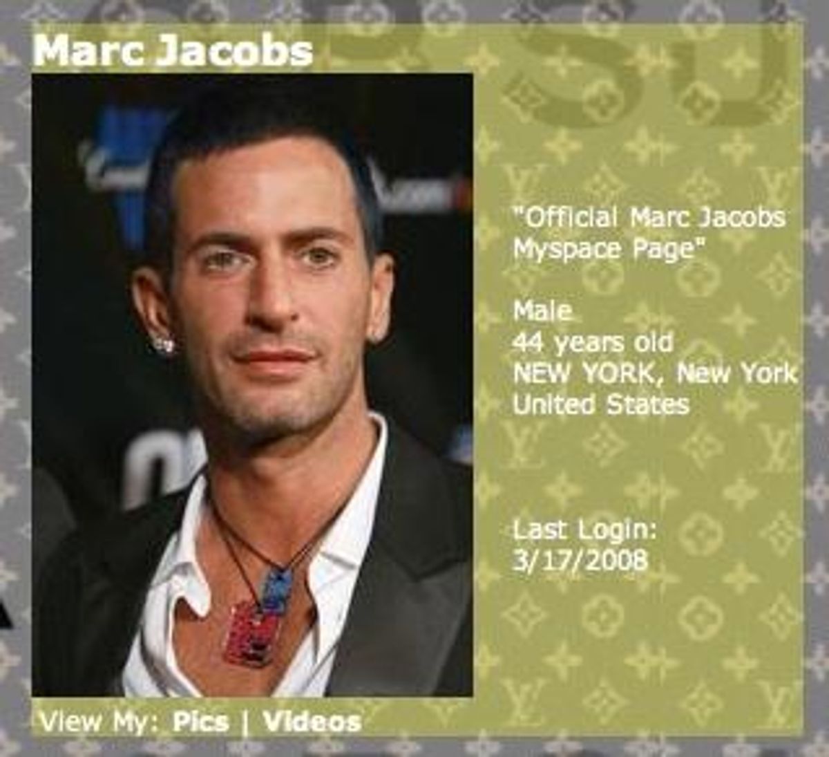ELLE.com has compiled a list of designer MySpace pages, so you can add them to your growing list of friends and feel a bit closer to Marc Jacobs and his dog, Nicolas Ghesquiere at Balenciaga, Tom Ford or Karl Lagerfeld. Personally, I love that Tom Ford's page plays some good ol' gay house music while Marc Jacobs' page offers up "No Scrubs" by TLC. Who knows if these are their official pages and many of them haven't logged into MySpace in ages, so maybe they've moved on to Facebook as the hip and trendy site of the moment?