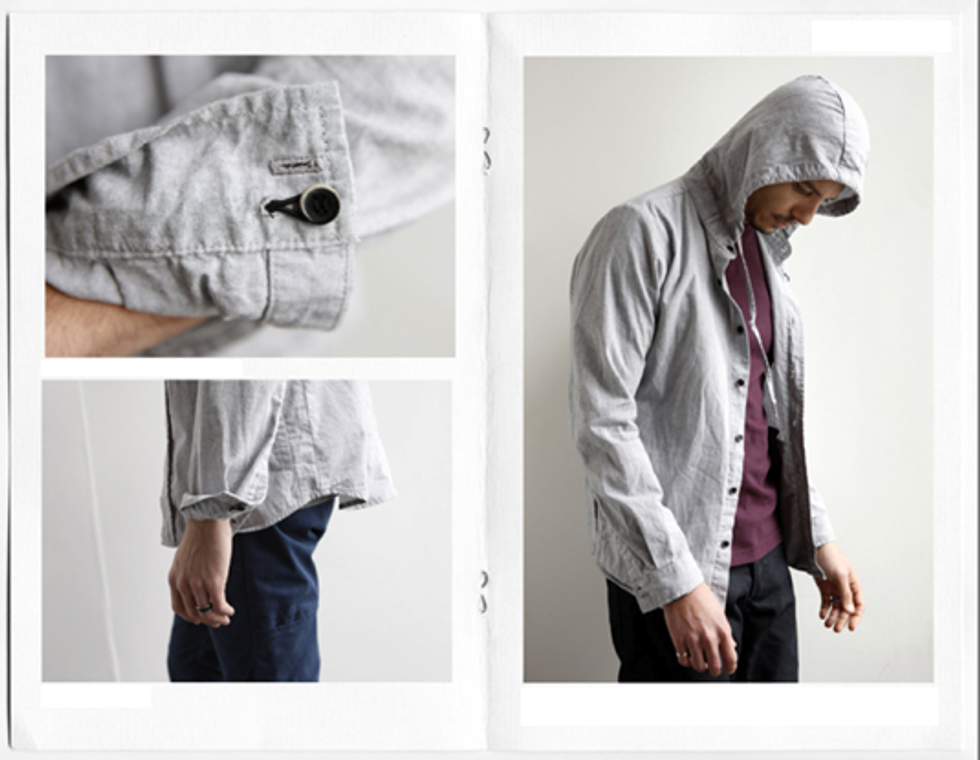 Teaming up with the boys behind cult label Nice Collective, Michael Martin has debuted the first collection for the collaborative new menswear label, Martin of San Francisco. Clean, structured lines and understated designs merge to create a thought-provoking aesthetic, inspired by cycling culture. In line with Nice Collective's tradition of throwing in hidden details, Martin--the creator of cycling brand and fixed-gear fanatics crew Mash SF--focuses on those that serve some sort of purpose for the wearer, such as elastic pulls in the cuff for keeping the sleeves rolled, a nylon windbreaker made to fold in on itself and into it's own stowaway pocket, and leather belts with concealed reflective elements for night riding. Grey, black, white, and navy make up the color palette for the season, with a couple of gingham and pinstripe prints thrown into the solid-heavy mix.