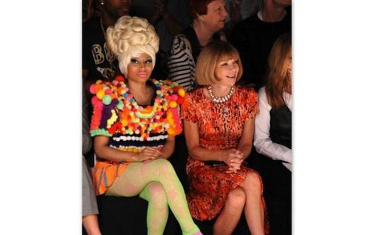 "After I went to some shows with Anna Wintour, I got an autographed photo from her the next day that said, 'We match!'" said Minaj. "I had on these, like, weird balls and craziness, and she had on this really sophisticated dress, but they both were orange. I was like, 'Oh my God, I'm getting this framed!' I'm going to get a bigger version and put it in my gym, because that's some fly motivation."