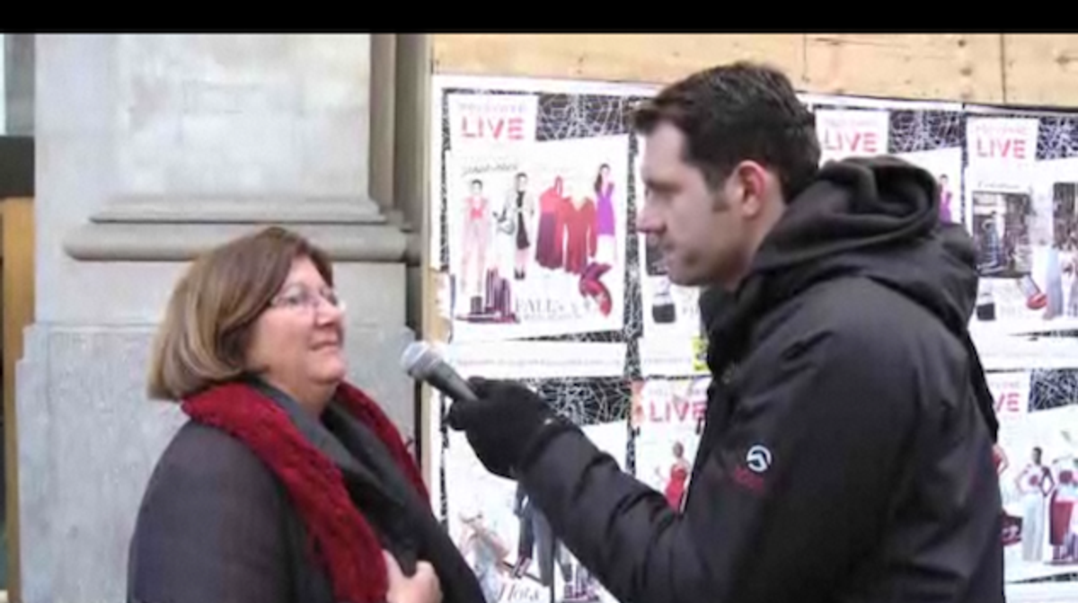 For this episode, which we saw at Funny or Die, he asked New Yorkers questions about the Academy Awards (airing tonight!), and one of the questions was whether Meryl Streep or Glenn Close was better. Unfortunately, one man chose Glenn, which didn't go over well with Eichner. At least the man didn't get beat with the microphone, like one poor lady earlier in the clip. See below...
