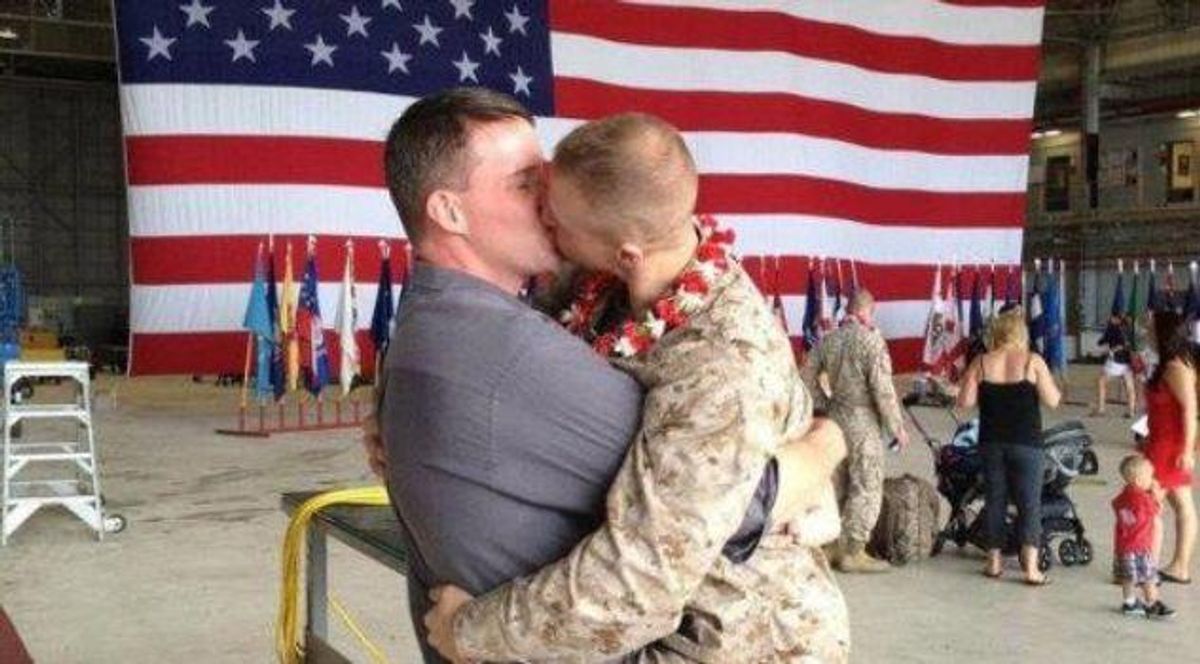 Just ask Marine Sgt. Brandon Morgan, whose passionate liplock with boyfriend Dalan upon his return from Afghanistan, has gone viral in a big way.