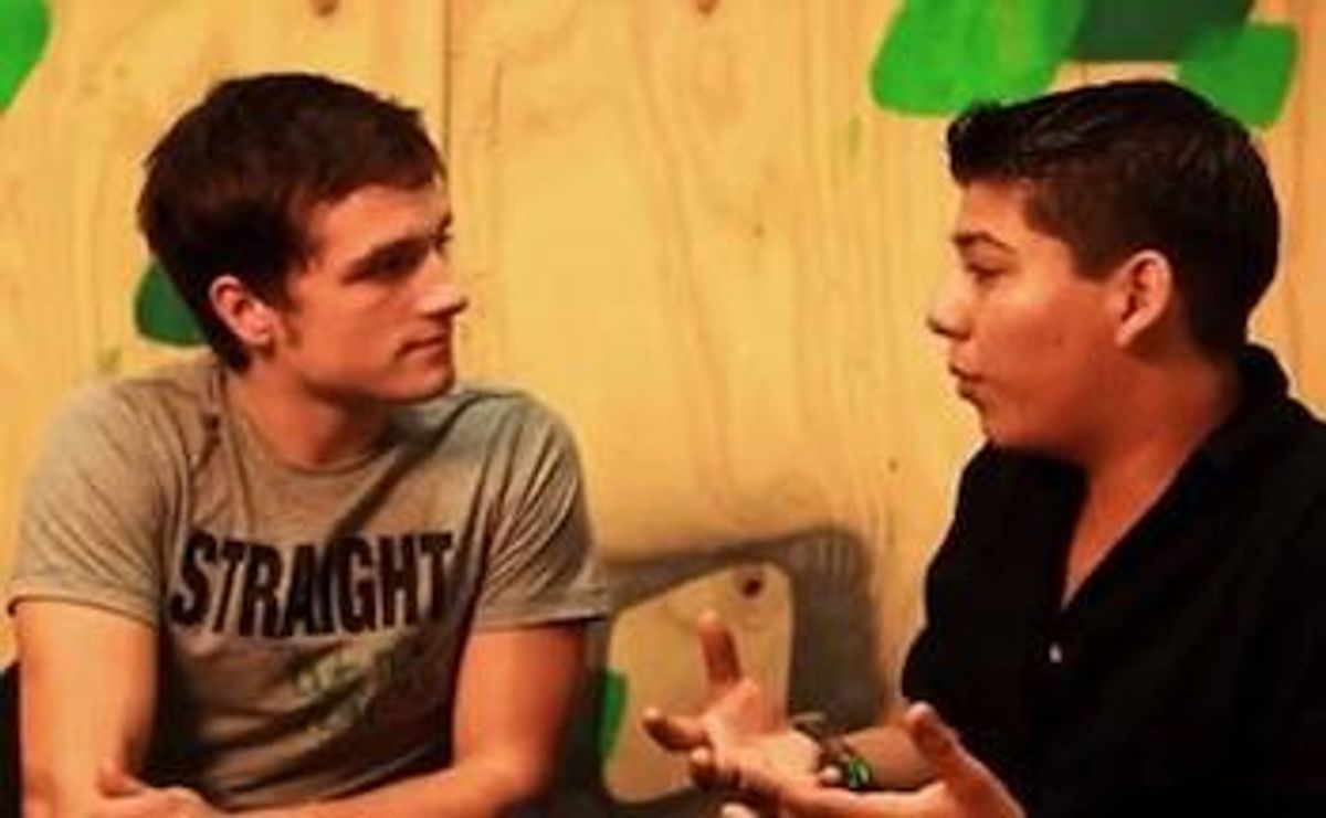 Actor Josh Hutcherson (The Hunger Games, The Kids Are All Right) and Straight But Not Narrow founder Avan Jogia meet with Gay-Straight Alliance Network leaders in this upbeat and inspiring clip. The GSA's goal is to empower youth activists to fight homophobia and transphobia in schools and Hutcherson spoke with roughly a half dozen kids about their GSA experience.