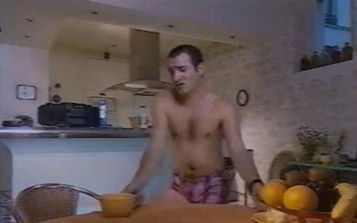 A snap of the elastic band to Manhunt Daily, which has unearthed this must-see video of a young Jean Dujardin--who is, of course, the dashing Frenchman who took home an Oscar for his work in The Artist--dancing around a kitchen in nothing more than his skivvies.