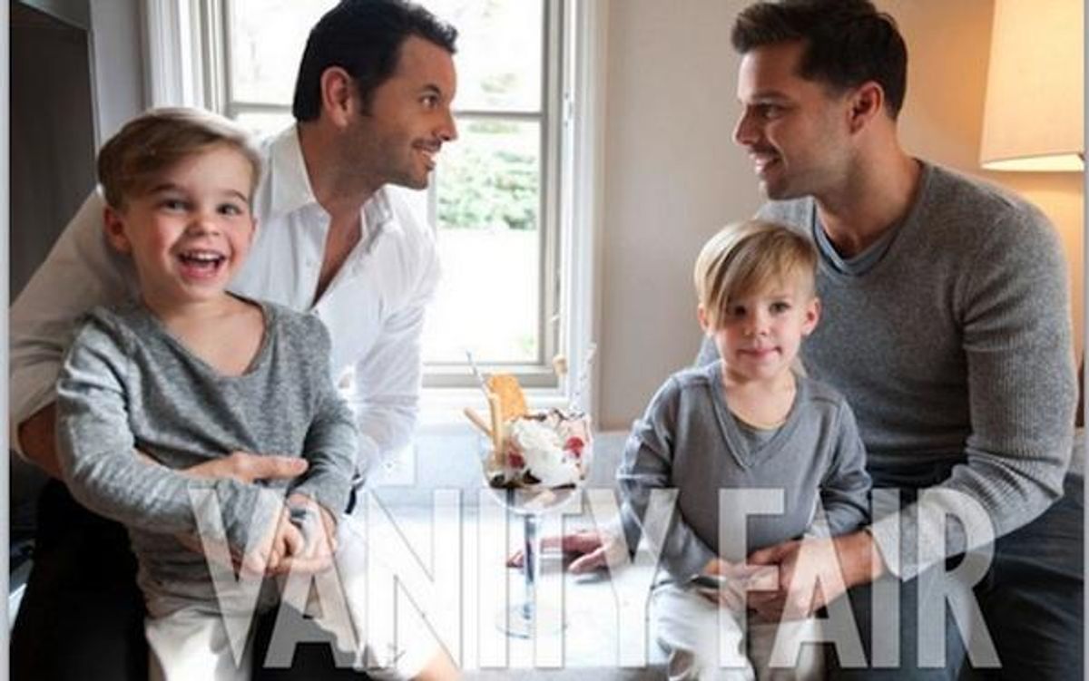 Martin posed for the magazine with his partner, Carlos Gonzalez Abell, and their adorable twins, Valentino and Matteo. And while the performer has been famously hesitant to discuss his family in the past, recently he's been a bit more open, including an illuminating interview that ran in recent issue of The Advocate.