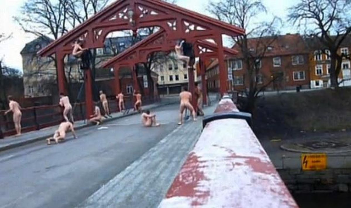 But then, about 20 seconds into each video, something miraculous always happens. Suddenly, naked Norwegian boys pop out of nowhere and start humping the landmarks!
