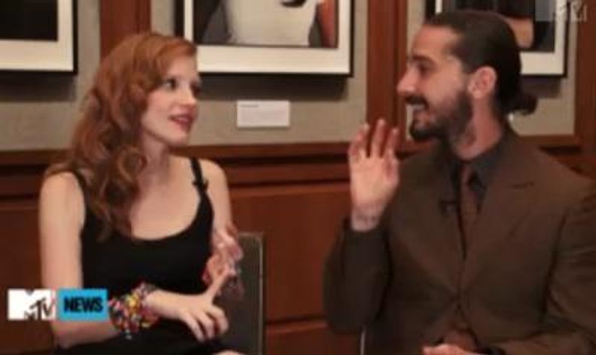 The best thing about this interview is LaBeouf's Lawless co-star, Jessica Chastain. She of the perfect skin, of the seven films--including The Help--last year (and who will be on Broadway this fall in The Heiress revival). She not only looks embarrassed for LaBeouf, she also wants to school him on how to be a better interviewer. It's priceless.