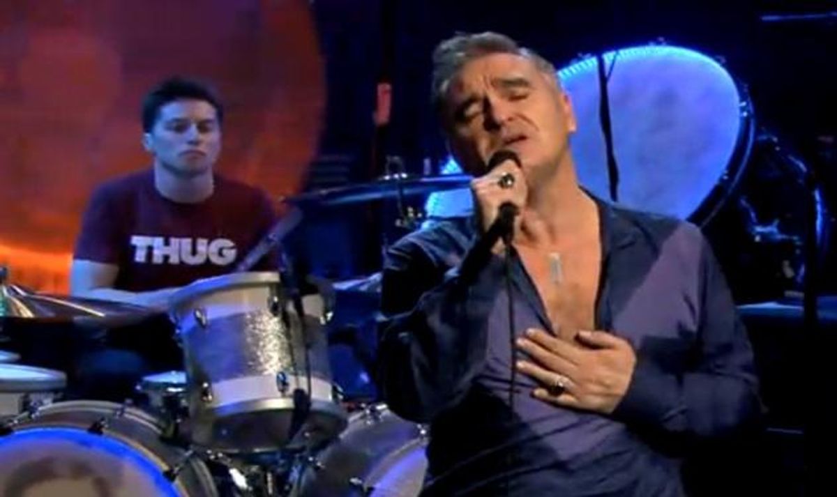 The mopey Mancunian turned up on late-night TV last night and performe da Frankie Valli cover and one of his originals. He's embarking on a US tour beginning in Boston tomorrow night (see below for complete dates. And since no one will sign the belligerent crooner it's about the only way he's going to make a living from his music. Check out the clips below.