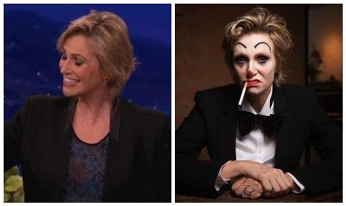 They also got to talking about Out's wonderful portrait of Jane for the 2012 Out100 in which she has clown makeup and a cigarette. Check it out below: