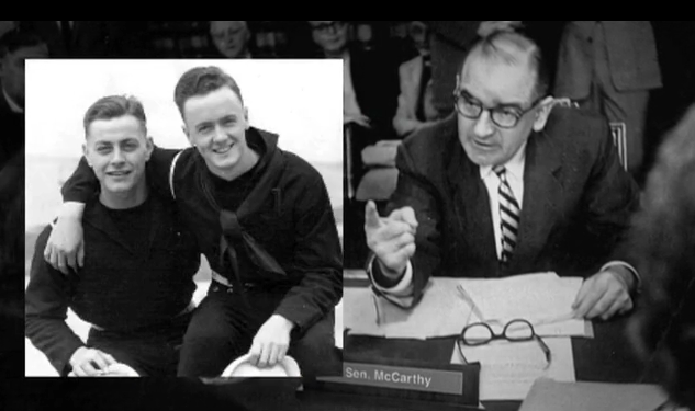 (Above, right, powerful and closeted gay lawyer Roy Cohn was instrumental in creating anti-Communist fervor.)
