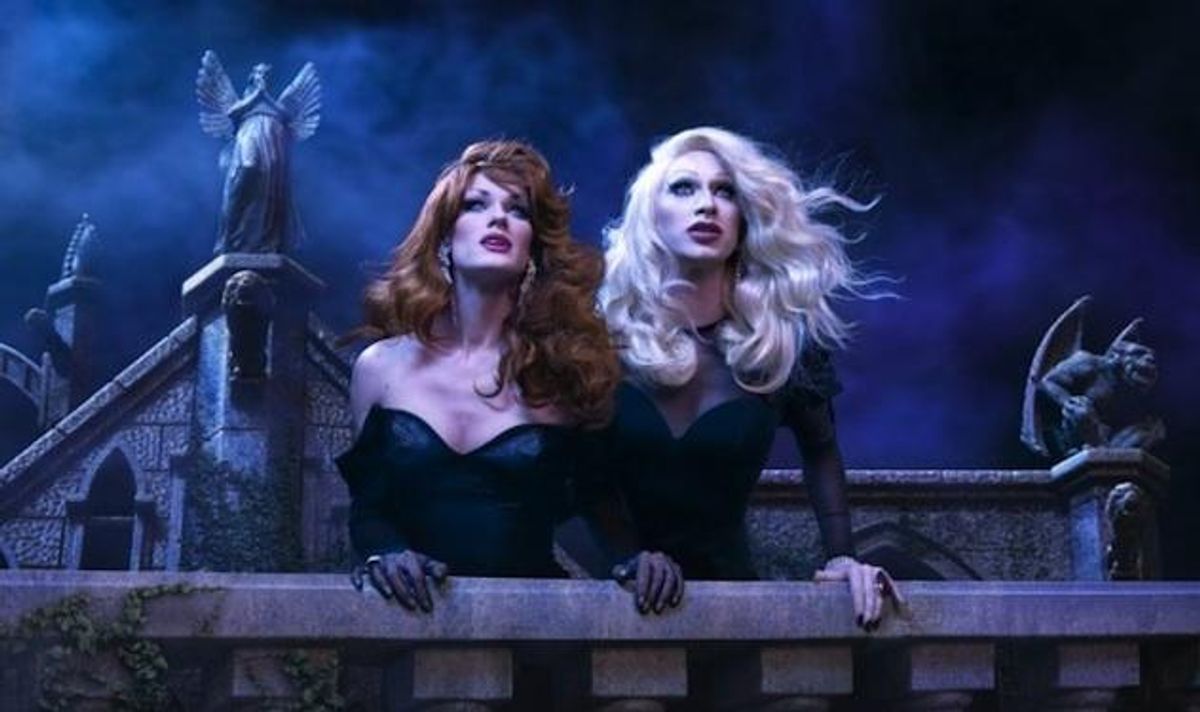 America's Next Drag Superstar Jinkx Monsoon poses as Madeline Ashton (Meryl Streep) and Miss Congeniality Ivy Winters channels Helen Sharp (Goldie Hawn) from the movie Death Becomes Her for photographer Ricky Middlesworth.