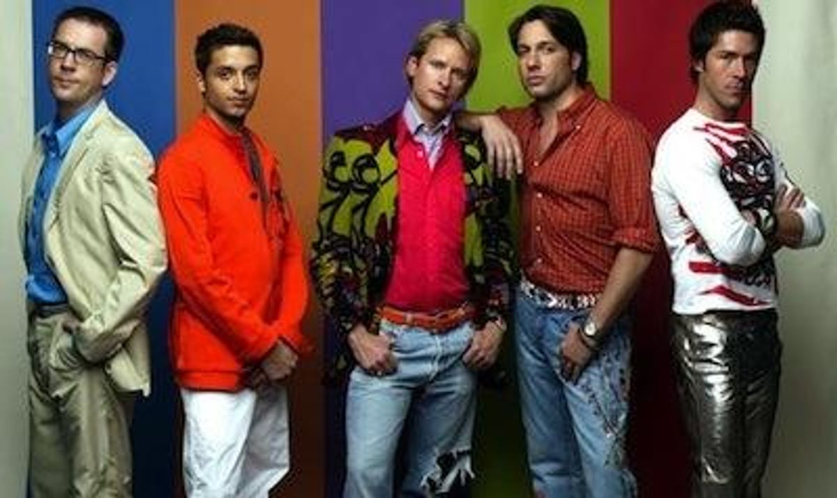 First, I must fess up: I didn't actually watch the show when it first aired. I had just moved abroad and was trying to learn Spanish by watching dubbed Simpsons reruns. Reading about it online, I wondered what everyone was making such a fuss about. I still remembered when Bravo was the place where I could watch archival footage of Martha Graham productions, obscure indie films, and devour Inside the Actors Studio episodes (when there weren't lame infomercials sucking up airtime to pay for the artsy channel). This was long before Real Housewives and Andy's "reality" aesthetic came to make it a cash cow. So I never experienced those potlucks where people gathered to watch the latest episode of Queer Eye. But I've been going through the old episodes on Netflix (the entire series is available on Instant), watching the seasons unfurl, and have been surprised how wonderfully dated it has become.